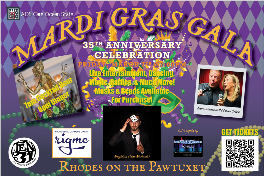 In honor of this occasion, we are hosting a 35th Anniversary & Mardi Gras Gala on Friday, March 7, 2025 at the historic Rhodes on the Pawtuxet in Cranston. The 35th Anniversary celebration will commemorate AIDS Care Ocean State’s (ACOS) service, dedication, and achievements, in addition to, recognizing the people who have lent to the success of the organization throughout its years.